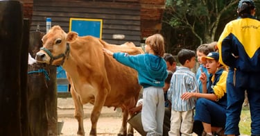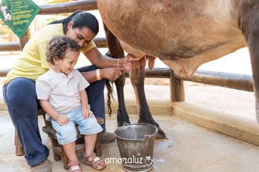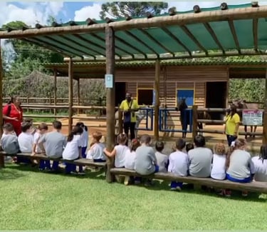 O passeio ao PetZoo proporciona às crianças uma vivência no ambiente rural, com contato direto com animais, natureza e atividades práticas que estimulam a curiosidade, o cuidado e o aprendizado por meio da experiência.