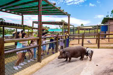 O PetZoo é um espaço educativo voltado para a vivência no meio rural, onde as crianças têm a oportunidade de observar, tocar e interagir com animais da fazenda em um ambiente seguro e acolhedor.